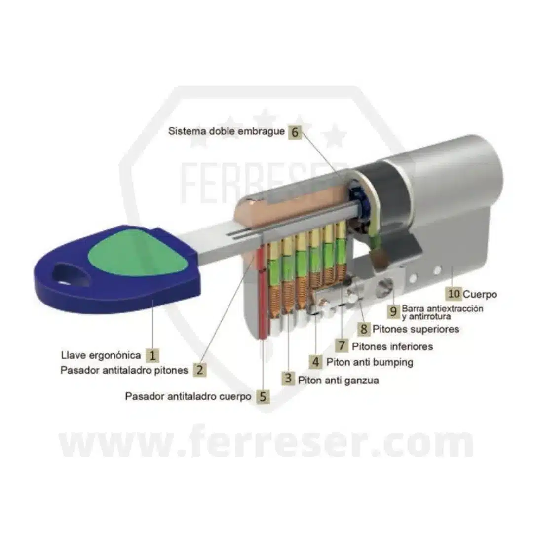 Se recomienda su instalación con escudo protector para maximizar la seguridad. La lubricación debe hacerse con productos específicos para cilindros, evitando aceites densos o productos que acumulen suciedad.