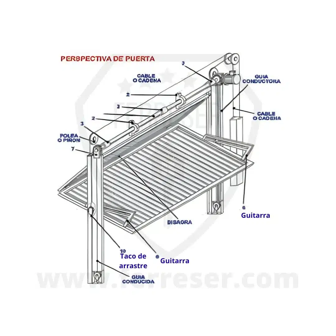 - 2 carriles de alzamiento y cadenas (transmisiones laterales completas) para instalación a ambos lados de la puerta.