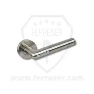 La manilla está fabricada en acero inoxidable AISI 304 con acabado níquel satinado, lo que le da un aspecto moderno y neutro que encaja bien tanto en viviendas actuales como en oficinas o negocios. Este material ofrece una alta resistencia al uso intensivo y a pequeños golpes o arañazos del día a día.